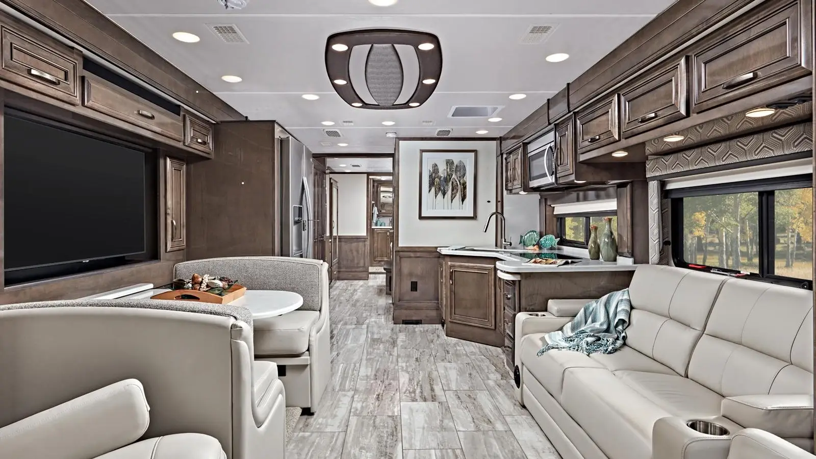 Les modèles les plus luxueux offerts dans nos gammes de motorisés de classe A à essence sont les Precept Prestige et le Emblem qui reprennent la construction solide de Jayco et Entegra, en y ajoutant une petite touche de luxe dans leur finition. Vous vous sentirez chez vous, après tout, c'est votre maison sur roue!