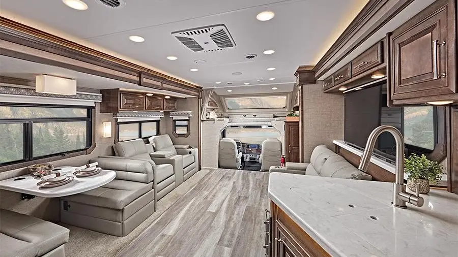 Nous offrons les gammes Accolade d'Entegra Coach et Seneca de Jayco qui sont construits sur des châssis Freightliner S2RV avec moteur diesel, et qui ont une finition et un équipement comparable à un motorisé de classe A "Pusher", rien de moins! Ce n'est pas tout, vous pouvez aussi trouver les gamems Accolade XL et Seneca Prestige qui offre une finition encore plus luxueuse!