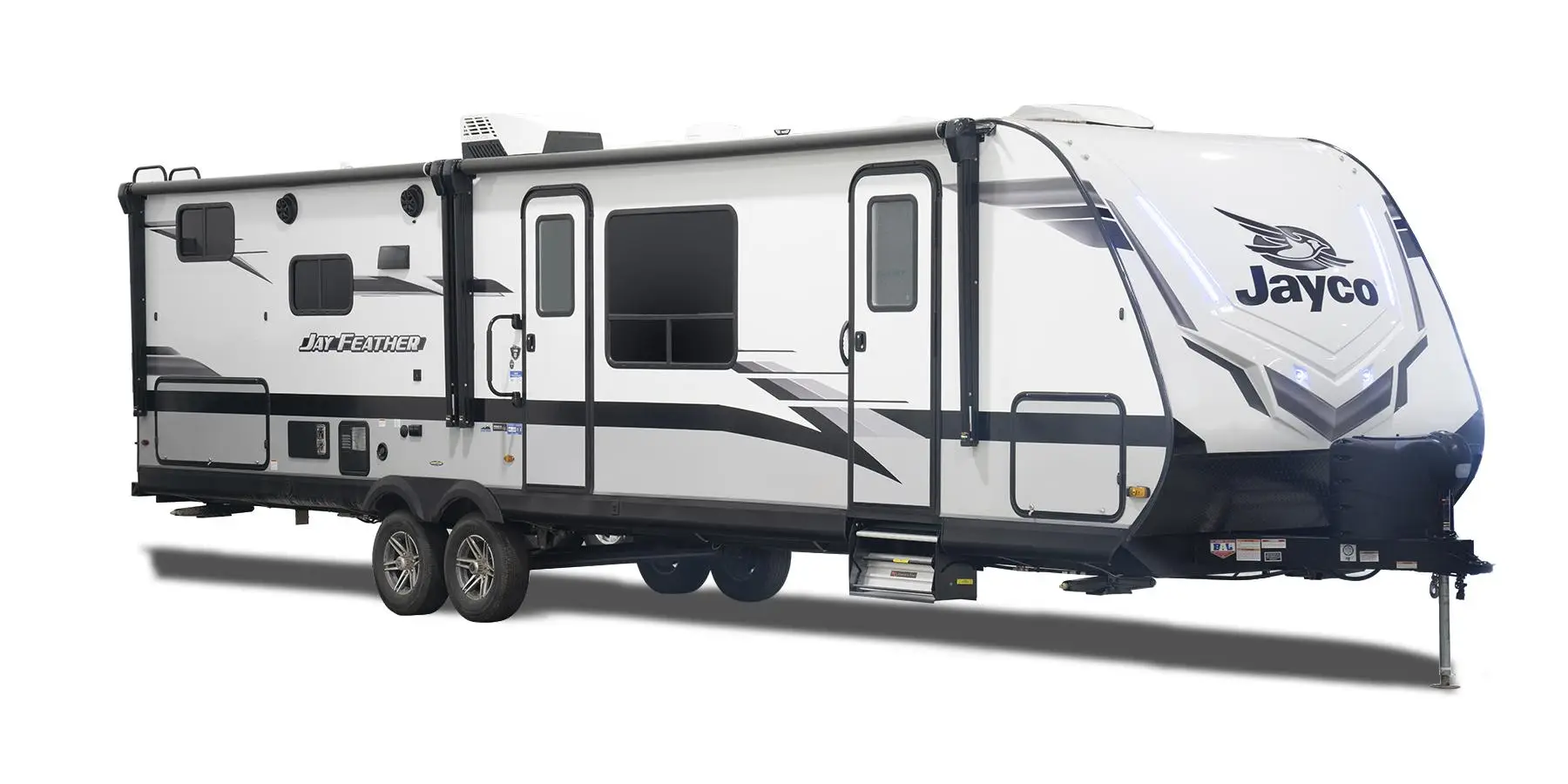 La roulotte Jay Feather est équipée d’un vérin électrique à l’avant et de quatre stabilisateurs aux coins, de deux bonbonnes de propane de 20 livres avec un régulateur automatique et un couvercle rigide, de compartiments avec verrous Keyed Alike™, d’un auvent électrique avec lumières DEL, de haut-parleurs de qualité marine, d’un marchepied léger en aluminium, d’une grande poignée d’entrée repliable, d’un ancrage pour télévision, une connexion de propane « Quick-Connect », une échelle d’accès au toit, un branchement électrique 30 ampères détachable, une douche extérieure, d’un système de vidange d’eau noire « Black Tank Flush » et d'un évent de réservoir d'eau noire 360 Siphon. Certains modèles possèdent une cuisine extérieure pour les amateurs de plein air qui ne veulent pas passer leurs vacances à l’intérieur!